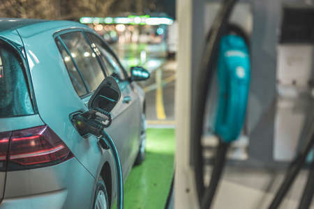 Charging an electric car at night in City