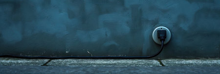 Electric plug and socket on the concrete wall. Copy space for text.