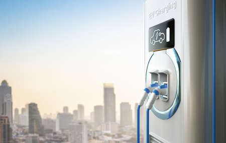 power supply plug of electric car charging station for energy vehicle EV. eco friendly
