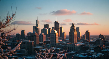 Cityscape of Chicago downtown at sunset, Illinois, United States.