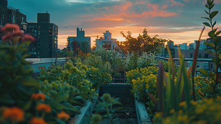 Urban rooftop gardens showcasing the integration of agriculture in city landscapes
