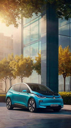Close Up of a Rechargeable EV on a City Street, Showcasing Eco-Friendly Transportation.