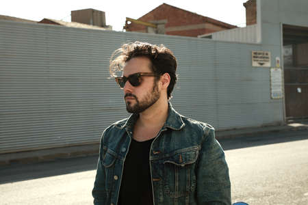 portrait young man with beard on the street