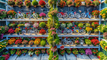 Aerial View: Modern Flower-Decorated Bicycle Parking - Sustainable Urban Transport