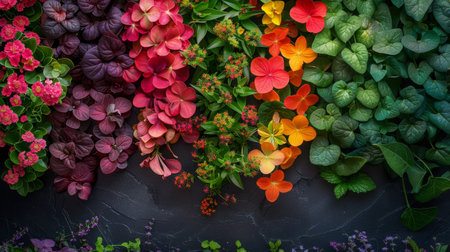 A stunning array of colorful flowers in a vibrant garden setting. This composition showcases the beauty and diversity of nature, perfect for floral themes.