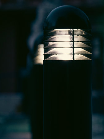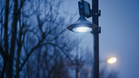 A streetlight shining brightly against a twilight sky, illuminating the city streets and providing a sense of security