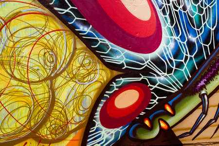 Street art. Colorful graffiti on the wall. Fragment for background. Abstract detail of a graffiti