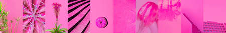 Set of trendy aesthetic photo collages. Minimalistic images of one top color. pink mood board