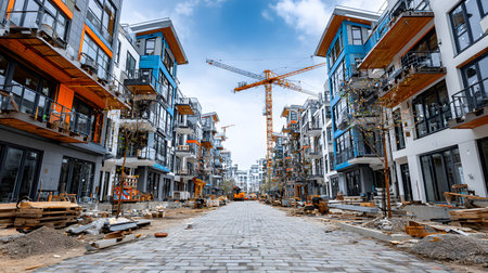 This image captures a modern urban skyline with a blend of newly constructed buildings and scaffolding, representing ongoing development in city life and architecture.