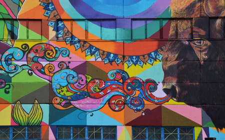 Mural art at East Williamsburg in Brooklyn. Outdoor art gallery known as the Bushwick Collective has most diverse collection of street art in Brooklyn