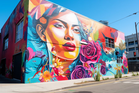 A building with a mural on the side of it. Generative AI image.