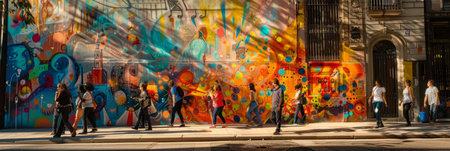 Once ordinary, a city street now dazzles with colorful street art and cheerful passersby the vibrant murals and happy faces make for a joyful, elevated everyday, banner
