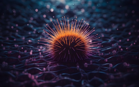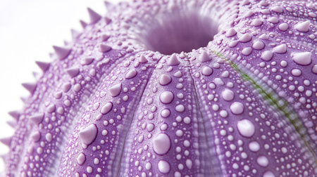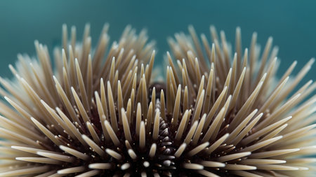 Prismatic sunset through water drops on sea urchin spines vibrant color spectrum exotic marine life