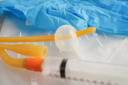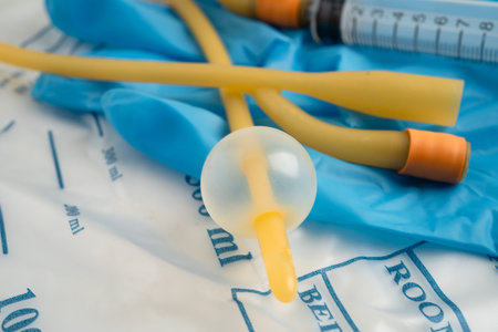 Foley urinary catheter with urine bag for disability or patient in hospital.