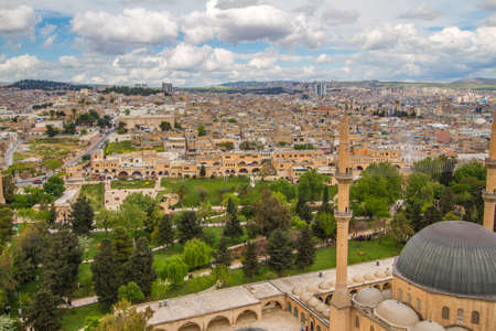 Aerial view of Sanliurfa with a minaret of Mevlid Halil mosque, Turkey