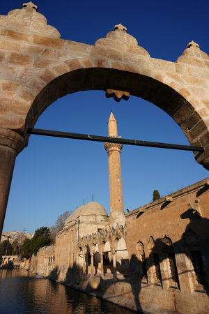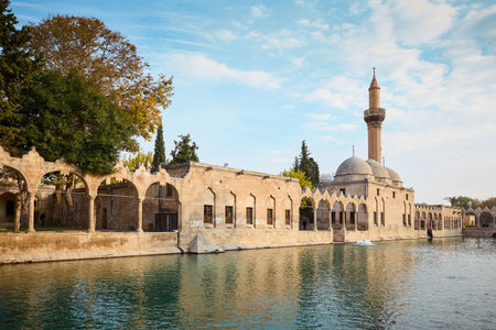 Rizvaniye Camii mosque and Balikligol fish lake in Sanliurfa, Turkey.