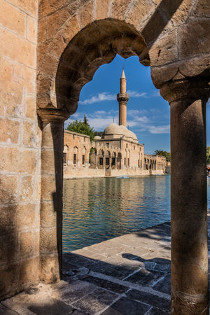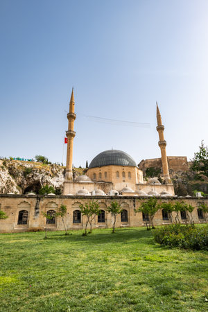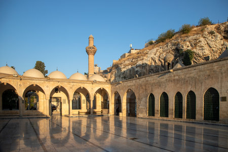 Sanliurfa,Turkey - 09-15-2023:View of Mevlidi Halil Mosque.Mevlidi Halil Mosque is in the old Sanliurfa