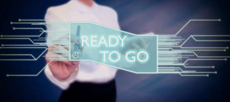 Conceptual caption Ready To Go. Business concept asking someone if he is prepared or packed his things Businessman in suit holding notepad symbolizing successful teamwork.