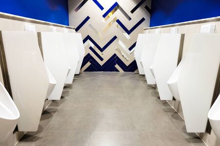Public gentlemen toilet restroom. Interior and Healthcare concept. Hygiene in shopping mall theme