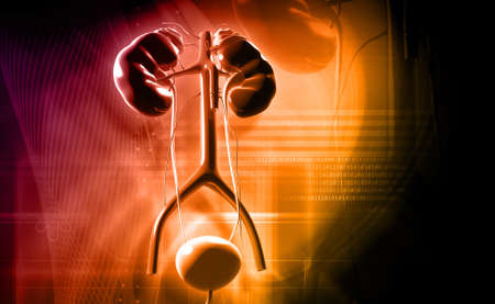 Digital illustration of kidney in colour background