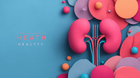 Banner showcases kidney health through bright shapes and colors, emphasizing wellness in a modern medical style. Ideal for health campaigns.