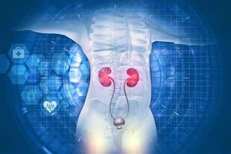 Human kidney anatomy on scientific background. 3d illustration