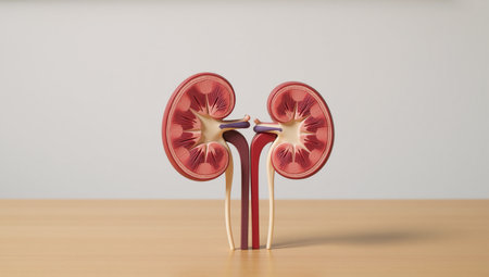 Human kidney model displayed in a laboratory setting, highlighting renal structure and function.