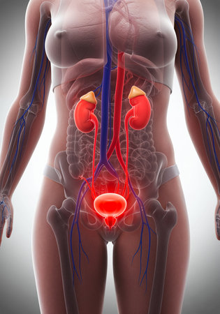 3D Illustration Concept of Female Urinary System Kidneys with Bladder Anatomy