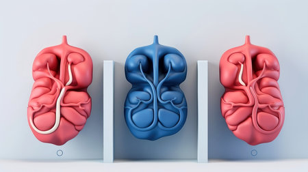 Detailed 3D render of healthy human kidneys set against a clean blue background, showing anatomical features clearly and effectively.