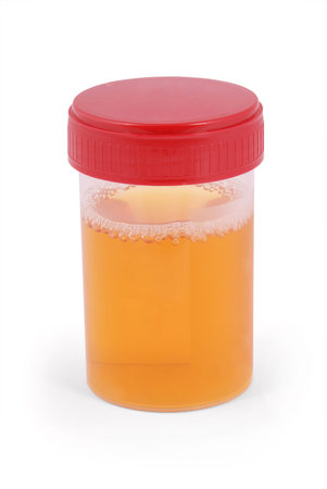Sterile Medical container for urine with biomaterial. Clipping path inside.