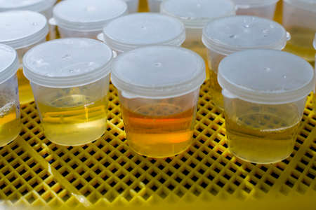urine vial in laboratory, toxicology or routine examination, vials with urine for laboratory examination