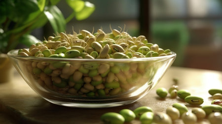 Generative AI : homemade red bean sprout in a strainer on a glass bowl
