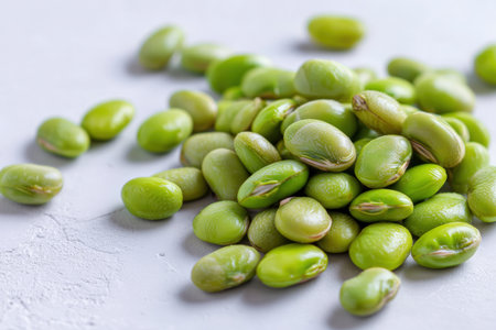 Fresh Shelled Edamame Beans on White Surface with Soft Shadows