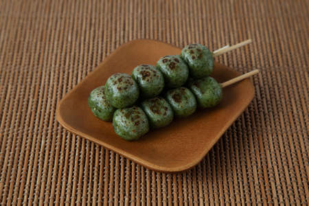 dango mugwort dumpling rice cake Japanese confectionery isolated on table