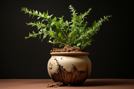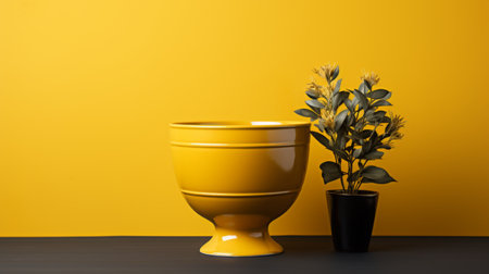 Dynamic Green Plant Yellow White Pot Against Orange Backdrop Bold Botanical