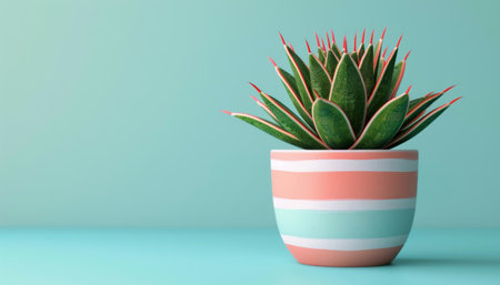 Houseplant against a bright wall. The concept of biophilia in the interior. Succulent in a pot on a colored background with copyspace