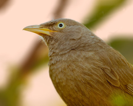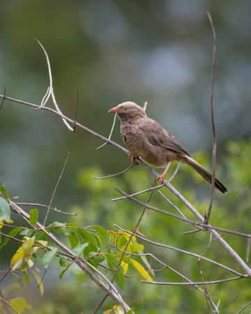 Jungle babbler Turdoides striatus on a branch. Sasan. Gir Sanctuary. Gujarat. India.