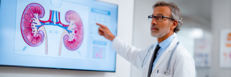Medical professional presents kidney health insights using a visual chart, effectively engaging a patient on the importance of renal wellness