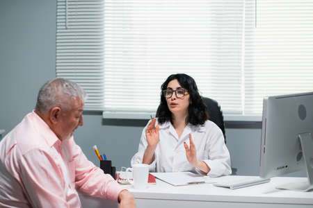 Doctor and woman patient consulting on doctors table in hospital.healthcare and medicine