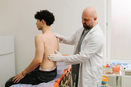 A focused healthcare professional explains medical procedures to a patient during a consultation in a clinic setting