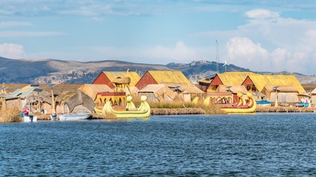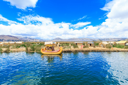 Puno, Peru - september 27, 2018: Uros Floating islands in Titikaka lake at the Border between Peru and Bolivia, in Peru