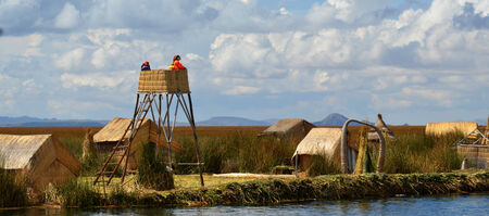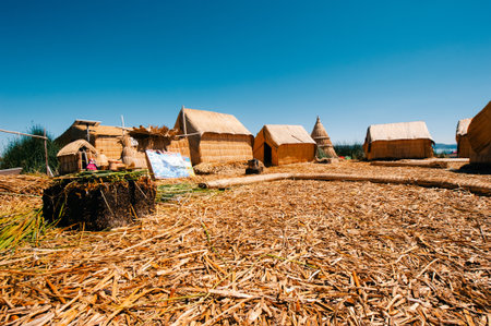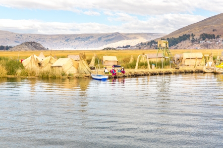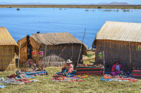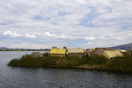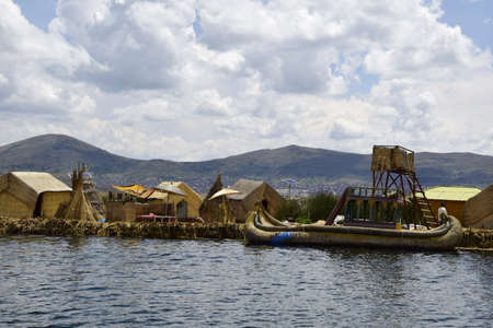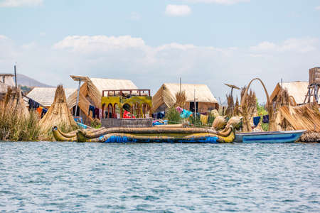 Titino Islands, Titicaca Lake, Peru - October 14, 2015: Photograph of the less touristic Titino Floating Islands on the Titicaca Lake.