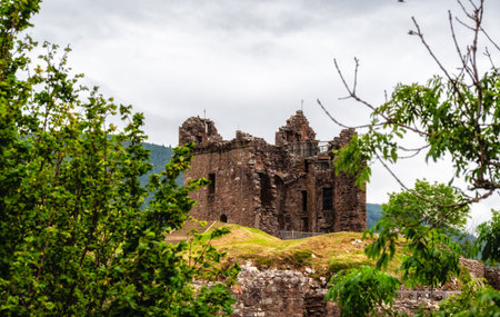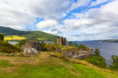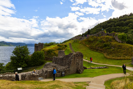 Drumnadrochit, Scotland 2022, August 19: Ruins of Urquhart Castle along Loch Ness, Scotland, Great Britain