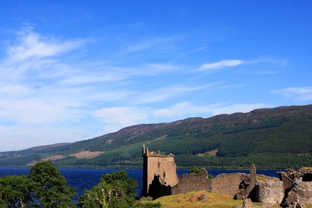 View of Urquhart Castle and Loch Ness in the Highlands of Scotland