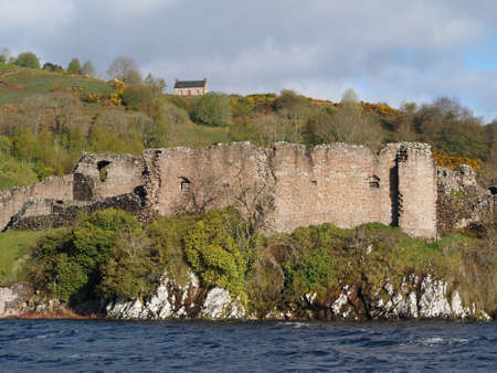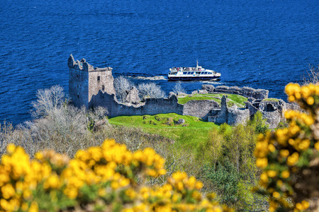 Urquhart Castle, Scotland, seen from the Loch Ness in may.