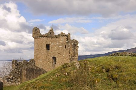 Stone ruins of Urquhart Castle in the Scottish Highlands.