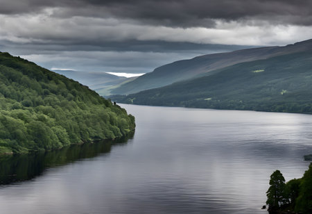 A view of Loch Ness in Scotland on a cloudy day