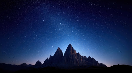 A stunning silhouette of a mountain rises against a star-filled sky, creating a tranquil scene. This breathtaking landscape captures the awe of nature at night.