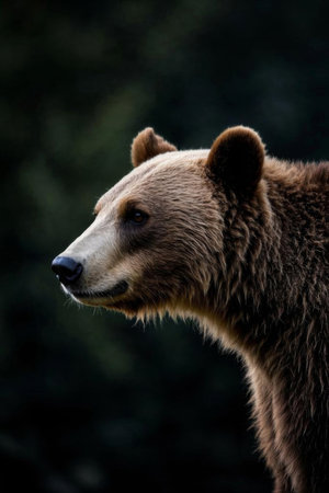 Majestic Brown Bear Portrait on Black Background, Wildlife Photography, Ursine Strength