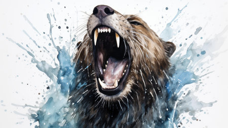 mighty creature, a mix between a lion and a bear, stands majestically with its mouth wide open, emitting a powerful roar.